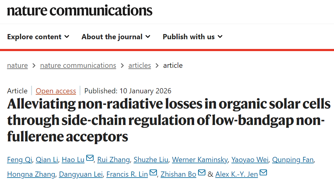 薄志山教授,在抑制有机太阳能电池非辐射能量损失的研究领域取得了重大突破性进展,相关成果以“Alleviating non-radiative losses in organic solar cells through side-chain regulation of low-bandgap non-fullerene acceptors”为题在国际顶级学术期刊Nature Communications上发表。九色视频