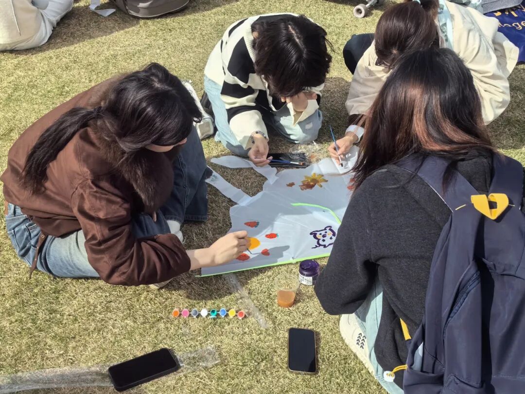 本次活动分为创意彩绘风筝DIY和风筝比赛两个部分。大家按组抽取专属组合色签,领取空白风筝、丙烯颜料、画笔等工具,在工作人员的简单讲解后,正式开启创意绘制之旅。笔尖流转,色彩交融。各小组脑洞大开,在素净的风筝上勾勒线条、铺陈色彩。每一只风筝都承载着小组的独特巧思与对春天的期许。